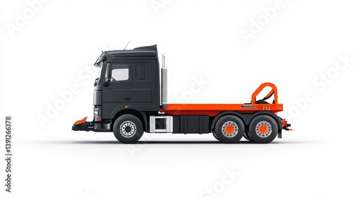Modern Flatbed Truck with Bright Orange Details on White Background