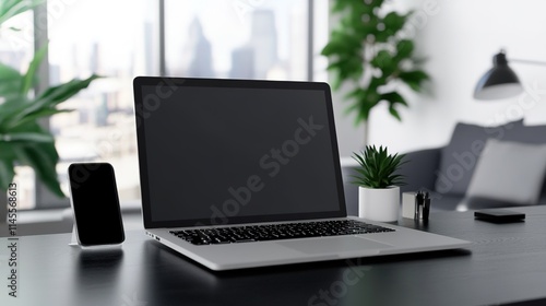 modern gadgets including smartphone and laptop mockup displayed in sleek home office setup