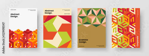 Modern geometric pattern corporate cover template bundle. Colorful pamphlet A4 vector design concept collection.