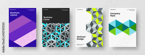 Modern geometric pattern placard illustration set. Creative handbill A4 vector design layout bundle.