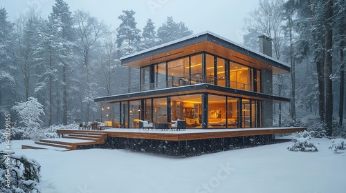 house, winter, snow, forest, glasses, architecture, modern, cabin, cosy, warm, landscape, nature, season, exterior, wood, design, retreat, peaceful, serene, tree, luxury, evening, light, structure, scene, environment, snowfall, beauty, calmness, residential, cold, warmth, home, relaxation, destination, lifestyle, vacation, solitude, scenery, weather, building, harmony, aesthetic, comfort, surrounding