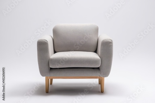 armchair, grey, fabric, upholster, modern, contemporary, furniture, home decor, living room, seating, comfortable, stylish, design, interior design, minimalist, simple, elegant, cosy, relaxation, comfort, apartment, house, home, chair, single seater, light grey, beige, wood, leg, interior, room, light, bright, background, white background, studio shot