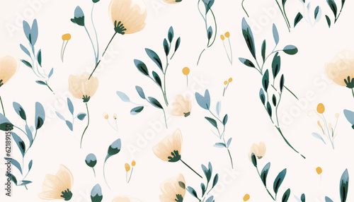 Modern hand drawn minimalist flower pattern. Light beautiful botanical print. Fashionable template for design.