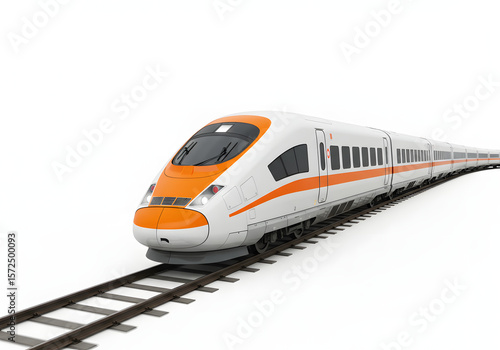 Modern HighSpeed Rail Train on Tracks Against White Background