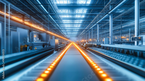 Modern hi-tech facility with automated line at the industrial factory. Smart factory industrial, Industry 4.0 concept