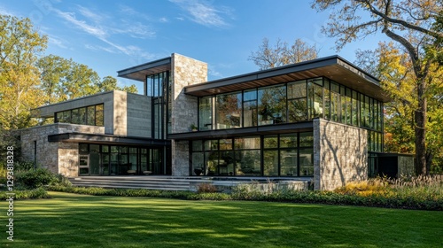 architecture, modern, building, glasses, house, residence, design, nature, landscape, sunlight, tree, exterior, outdoors, luxury, contemporary, structure, garden, home, facades, modernism, calmness, stylish, scenery, environment, relaxation, space, property, urban, finish, detail, view, picturesque, appealing, inviting, roomy, aesthetic, craftsmanship, residential, setting, clean, line, serene, open, area