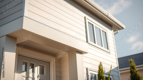 Modern House Exterior: Beige Siding, Clean Design, and Stylish Architecture. Perfect for Real Estate and Home Design Inspiration.