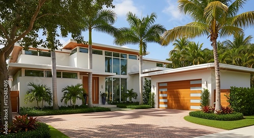 house, modern, exterior, home, design, architecture, contemporary, palm, tree, landscaping, garage, property, luxury, residential, estate, style, building, facades, front, view, plant, garden, patio, residence, elegant, stylish, beautiful, charming, attractive, impressive, stunning, amazing