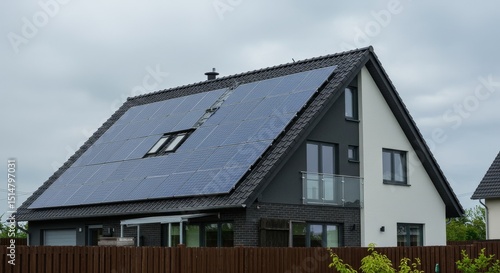 Modern House Photo Solar Panels on Roof Renewable Energy Architecture