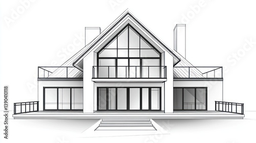 Modern House Sketch Front View Architectural Design, Ideal for Home Design Presentations