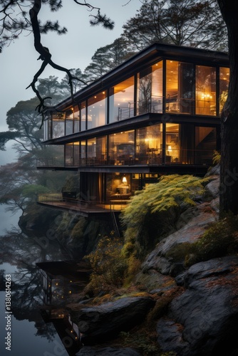 tranquil scene, building design, modern architecture, house