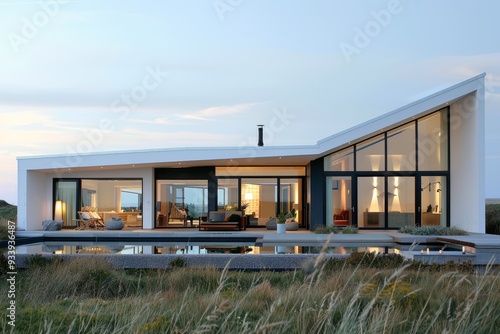 terrace, pool, sunset, nature, open space, architecture, residence, cosy, evening light, luxury, landscape, elegance, exclusive, prestigious, comfort, style, outdoor lighting, glasses, wood, modernity, innovation, exterior, facades, calmness, environment, harmony, design, inspiration, building, house, home, sky, window, blue