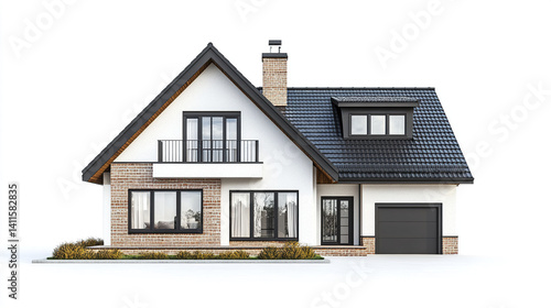 modern, house, brick, facades, black, roof, window, residential, architecture, exterior, home, design, contemporary, building, real estate, property, garage, balcony, chimney, landscaping, front view, isolated, white background, stylish, elegant, family, living, structure, urban, rental