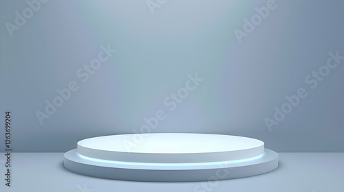 Modern illuminated display platform in a minimalist studio setting with soft lighting
