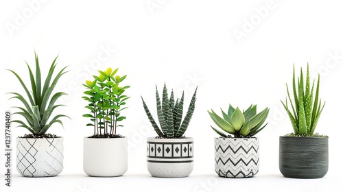 Modern indoor plant standing alone on a clean white background. A contemporary potted plant that brings a touch of greenery and freshness to an indoor space