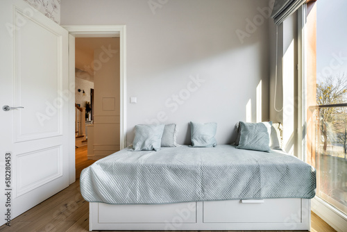 bedchamber, bed, interior, apartment, architecture, bedding, big, bright, comfort, comfortable, contemporary, cosy, decor, decoration, decorative, design, domestic, double, elegance, empty, estate, flat, floor, frame, furniture, home, house, indoor, lamp, lifestyle, light, luxury, minimal, modern, new, nobody, pillow, pink, relax, room, simple, soft, space, style, stylish, trendy, wall, window, wood