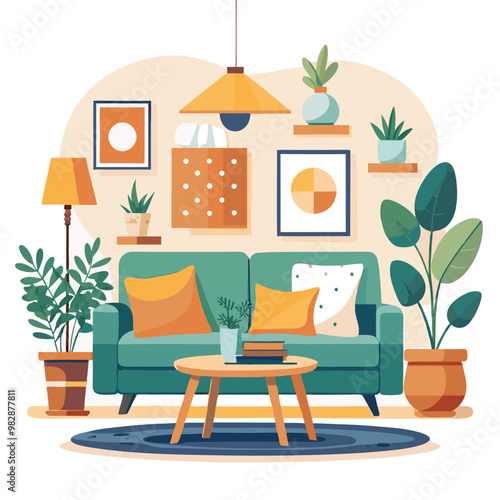 Modern Interior Design with Sofa Set Flat Vector Isolated