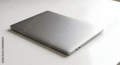 laptop, computer, technology, tech, modern, minimalist, sleek, design, office, desk, work, business, digital, screen, closed, silver, white, portable, workspace, blank, clean, device, electronic, contraption, object, communication, metal, slim, notebook, equipment, new, personal, studio, background, nobody, horizontal, product, copy space, working, education, learning, cyberspace, connection