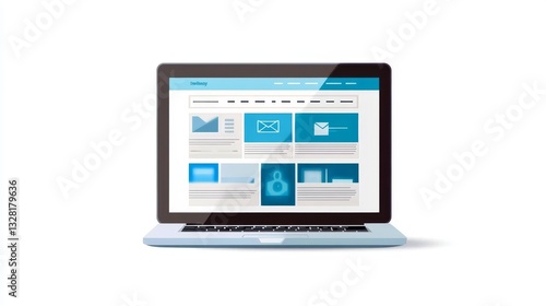 Modern laptop displaying a website with email icons and text boxes