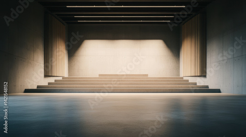 modern lecture theater featuring tiered seating, concrete walls, and wooden accents, creating minimalist and inviting atmosphere for presentations and discussions
