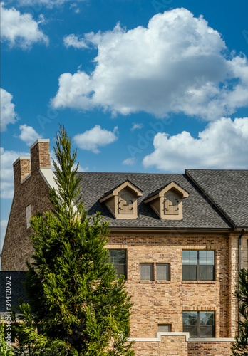 Modern Light Brick Condos with Dormers and cypress tree