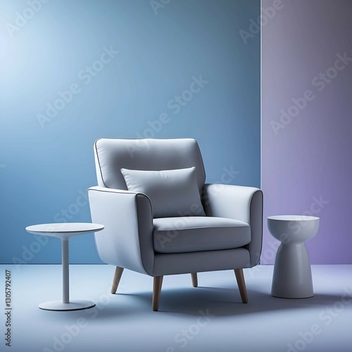 Modern Light Gray Armchair with Stylish Side Table in Soft Lighting