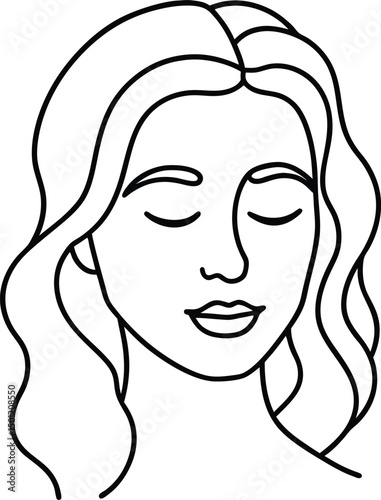 Modern line art face drawing with dark pastel colors, Contemporary female face, Hand drawn outline trendy illustration, Continuous line, minimalistic concept
