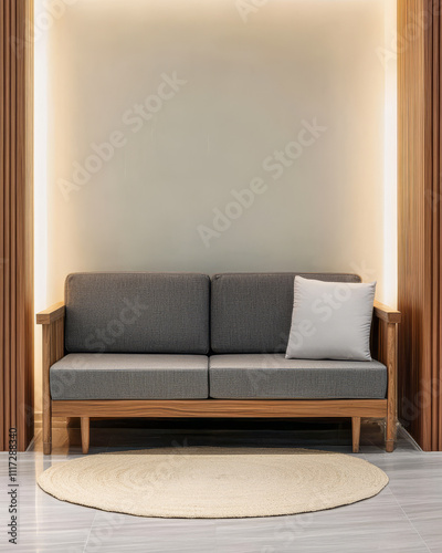 sofa, couch, living, room, interior, design, minimalism, comfort, decor, home, furniture, modern, grey, illumination, cushion, rug, soft, cosy, contemporary, wall, relaxing, stylish, sitting, area, atmosphere, simplicity, wood, texture, residential, calmness, space, layout, aesthetic, arrangement, warmth, inviting, natural, architecture, clean, line, serene, environment, furnishing, setup, ambience, chic, elegance