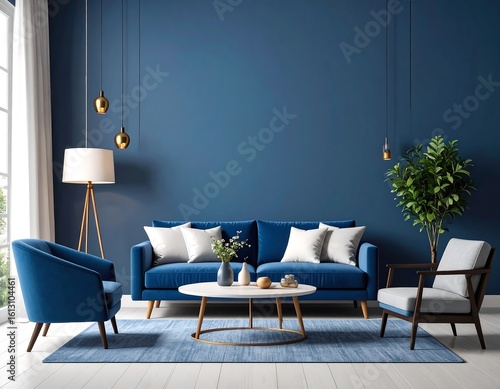 modern, living, room, blue, sofa, chair, table, plant, lighting, interior, design, cosy, stylish, elegant, contemporary, velvet, accent, geometric, neutral, warm, minimalist, space, home, furniture, relaxing, texture, decor, sophisticated