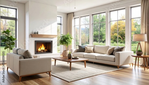 interior, living, room, modern, fireplace, sofa, couch, wood, floor, window, plant, light, cosy, home, design, decor, furniture, roomy, bright, natural, sunlight, warm, relaxing, comfortable, elegant