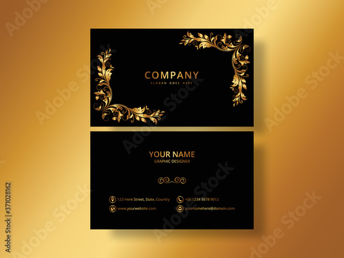 Modern luxury business card template with golden floral design.