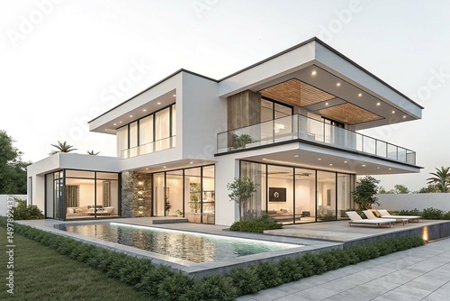 Modern Luxury Villa Architectural Design on white background