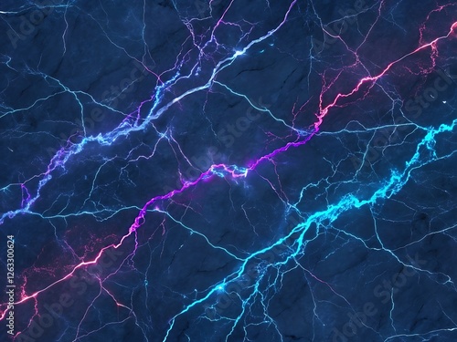 modern marble background featuring a deep navy base with neon streaks of electric blue, purple, Generative AI