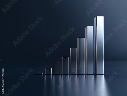 graph, bar, chart, ascending, growth, success, business, financial, trend, datum, metallic, silver, dark, modern, three-dimensional, progress, increase, positive, rising, upward, investment, economy, analysis, performance, future, strategy, result, development, potential, profit, advancement, dynamic, momentum, advance, innovation, expansion