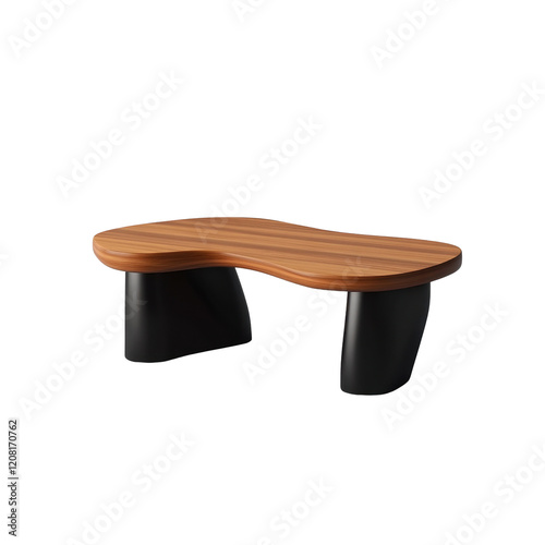 Modern minimalist 3D table design featuring smooth, rounded edges and a sleek structure. Ideal for contemporary interior design projects. Isolated on transparent background, png.
