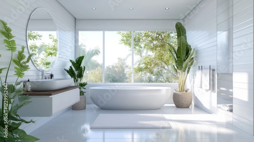 natural, airy, wellness, green, view, white, floor, storage, spa, stone, roomy, light, bamboo, decor, interior, minimalist, wall, basket, style, mirror, bathroom, minimalism, modern, bright, shelf, sunlight, ceiling, contemporary, window, palm, design, faucet, calmness, bathtub, sink, luxury, shower, tropical, cabinet, potted, freestanding, plant, greenery, leaf, relaxation, water, clean, wooden