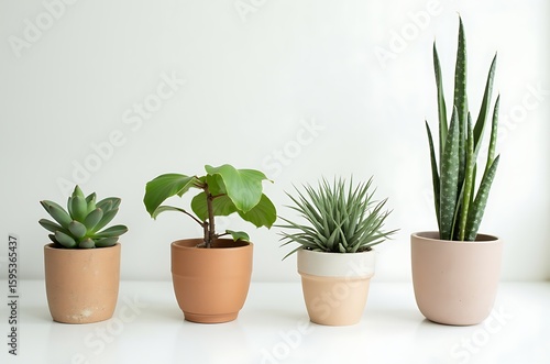 Modern Minimalist Living Room Succulents in Terracotta Pots ai generated