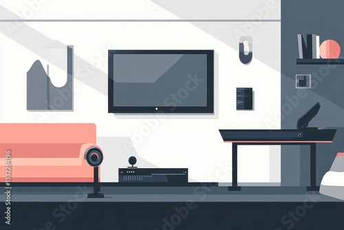 Modern Minimalist Living Room with Comfortable Furniture and Technology