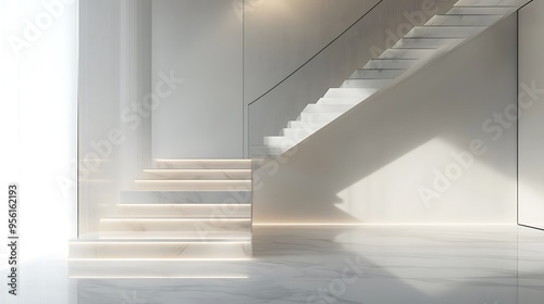 staircase, modern, minimalist, marble, white, interior, design, architecture, luxury, home, contemporary, style, clean, line, geometric, elegant, sophisticated, bright, light, illuminated, step, flooring, floor, wall, room, space, minimal, simple, polished, glossy, smooth, texture, pattern, decor, house, building