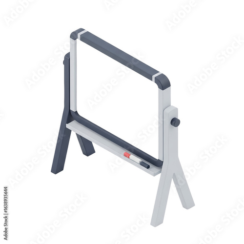 whiteboard, racked, modern, minimalist, education, school, office, meeting, presentation, display, learning, teaching, design, furniture, product, three-dimensional, grey, white, marker, red, black, simple, geometric, illustration, contemporary, portable, functional, classroom, educational, equipment, tool, workspace