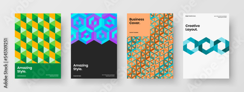 Modern mosaic shapes banner illustration bundle. Minimalistic flyer vector design layout set.