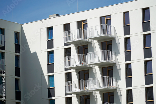 apartment, real estate, property, multistorey, residential, balcony, accommodation, house, home, facades, development, exterior, modern, multistorey, warsaw, europa, poland, building, urban, architecture, white, sky, sunny, new