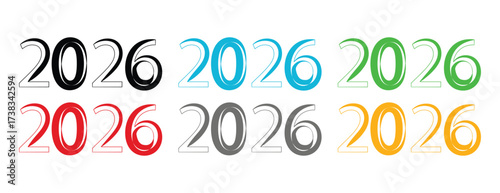 Modern New Year 2026 Typography Design Set, Multiple Color Future Date Vector Graphic