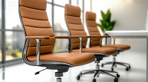 Modern office chairs in a bright workspace setting