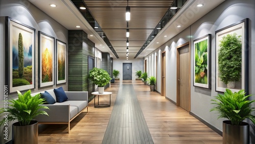 Modern Office Corridor Design in Rule of Thirds Composition for Enhanced Aesthetic Appeal