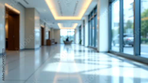 Modern Office Hallway with Soft Focus and Natural Light Streaming In