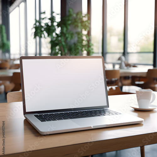 Modern Office Workspace with Blank Computer Notebook Mockup. Creative Business Design Concept in a Stylish, Contemporary Setting. Ideal for Freelancers and Startup Professionals., Ai generative