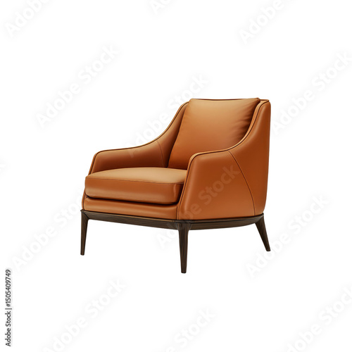 Modern Orange Leather Armchair with Dark Wood Legs - Elegant Living Room Furniture