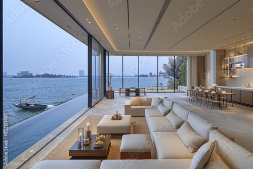 modern, living, space, large, window, minimalist, design, stunning, ocean, view, open, airy, atmosphere, stylish, chic, contemporary, inviting, bright, roomy, serene, tranquil