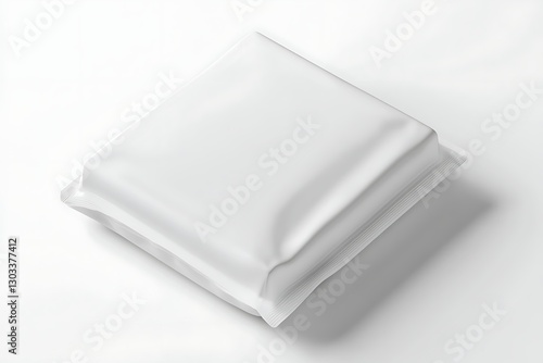 Modern packaging mockup for farm animal food, a large white square-shaped package on a light background.
